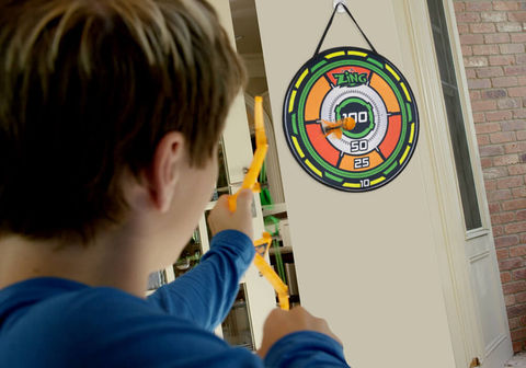 The Air Storm Bullz Eye Bow brings ultimate fun. Hook the arrows in the fast load loops then ready, aim, and fire! The unique delivery mechanism allows for supreme accuracy while launching soft, safe arrows over 35 feet. Set up your own targets for practice, or go all out in an archery battle!