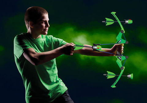 Never step on the battlefield without the Air Storm Z-Tek bow set. High-strength bungee cords give you complete power and control, allowing for long-range launches of over 150 feet. Get up close and personal with the suction cup arrow, or take the high ground and launch long-bombs with the Zonic whistle arrow.