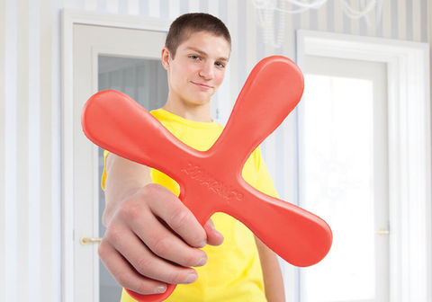 Roomarang, the original lightweight indoor boomerang eliminates the indoor no-fly zone. Foam construction makes it soft, safe and furniture friendly. Flies between 2 to 10 feet depending on how hard it’s thrown. Includes throwing instructions which will teach you some exciting Roomarang flying tricks. It’s easy to learn and fun for all skill levels.
